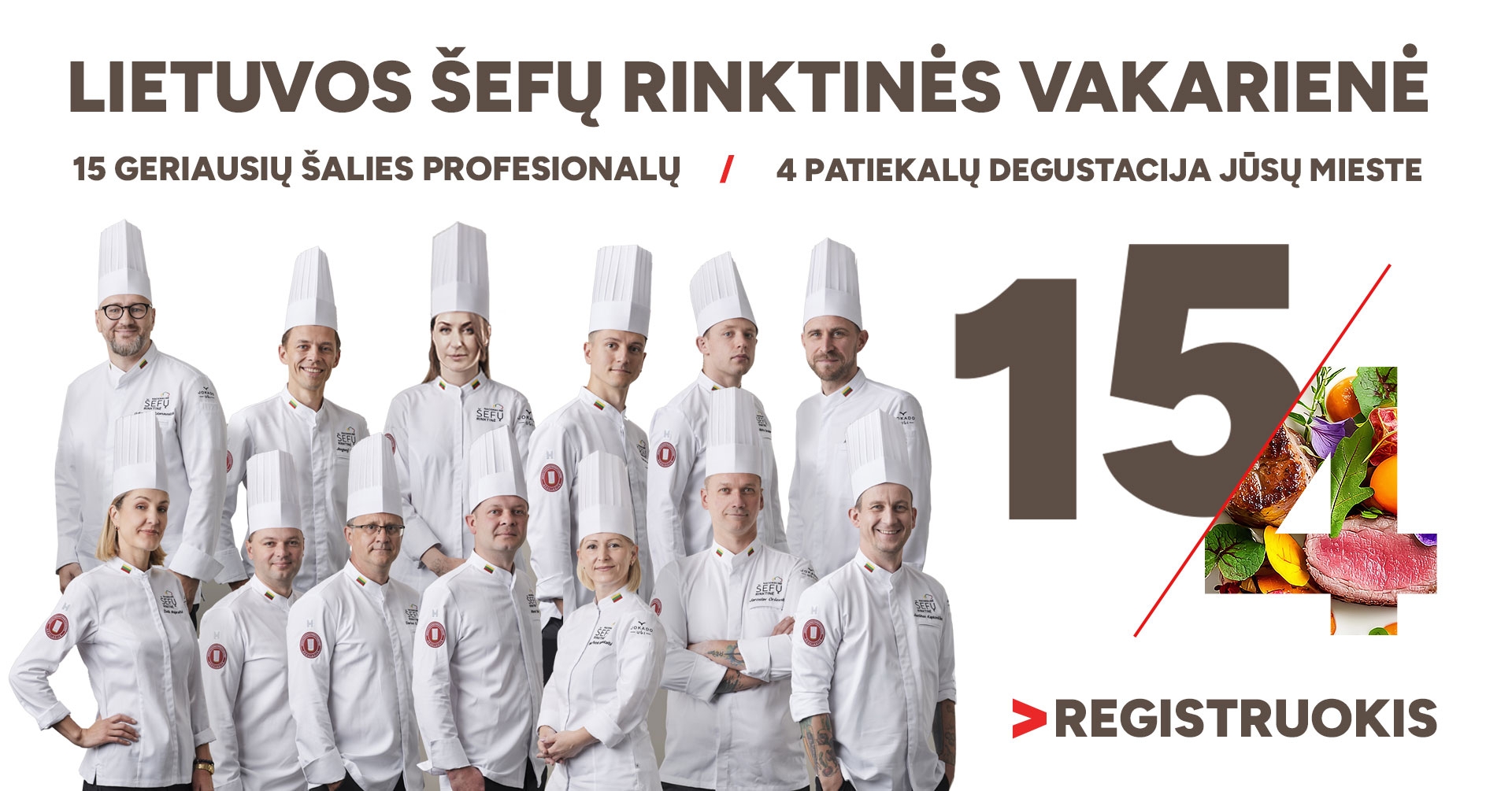 Patirkite unikalią patirtį – degustacinę vakarienę, kurią ruošia 15 drąsiausių, atkakliausių, savo darbo ir laiko dėl rezultato neskaičiuojančių, atradimais gyvenančių ir aukščiausių laimėjimų skonį konkursuose jau ne kartą patyrusių Lietuvos virtuvės profesionalų komanda.